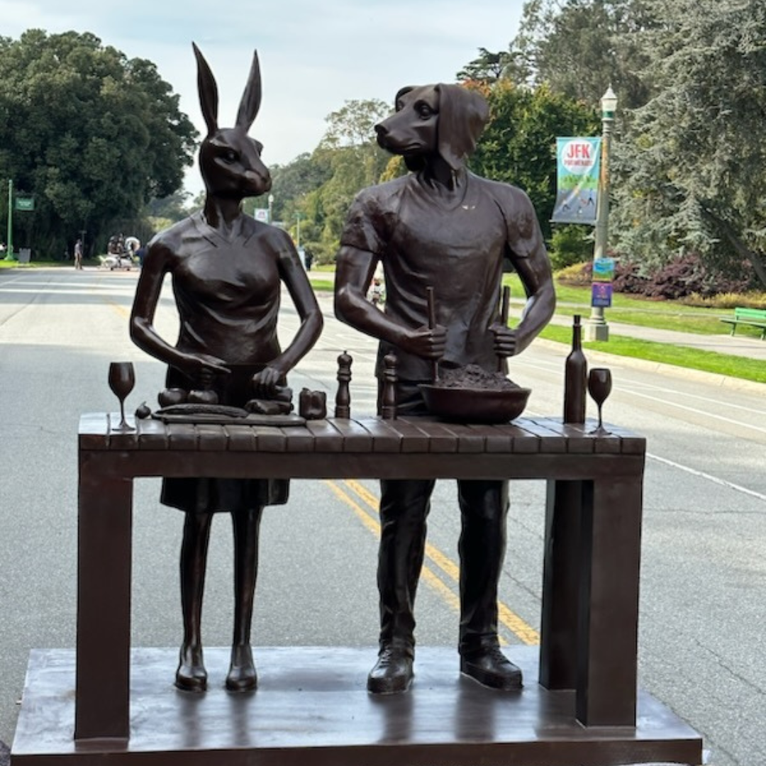 The exhibition, titled ‘Eat, Travel, Play, Care,’ comprises four enchanting bronze sculptures that tell compelling stories and invite visitors to engage with art in a profound and interactive way.