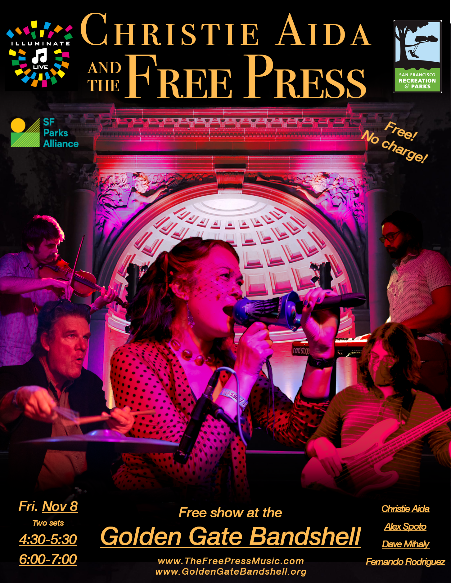 November 8, 2024Ease into the weekend at the Golden Gate Bandshell with a Friday Happy Hour performance by Christie Aida & the Free Press