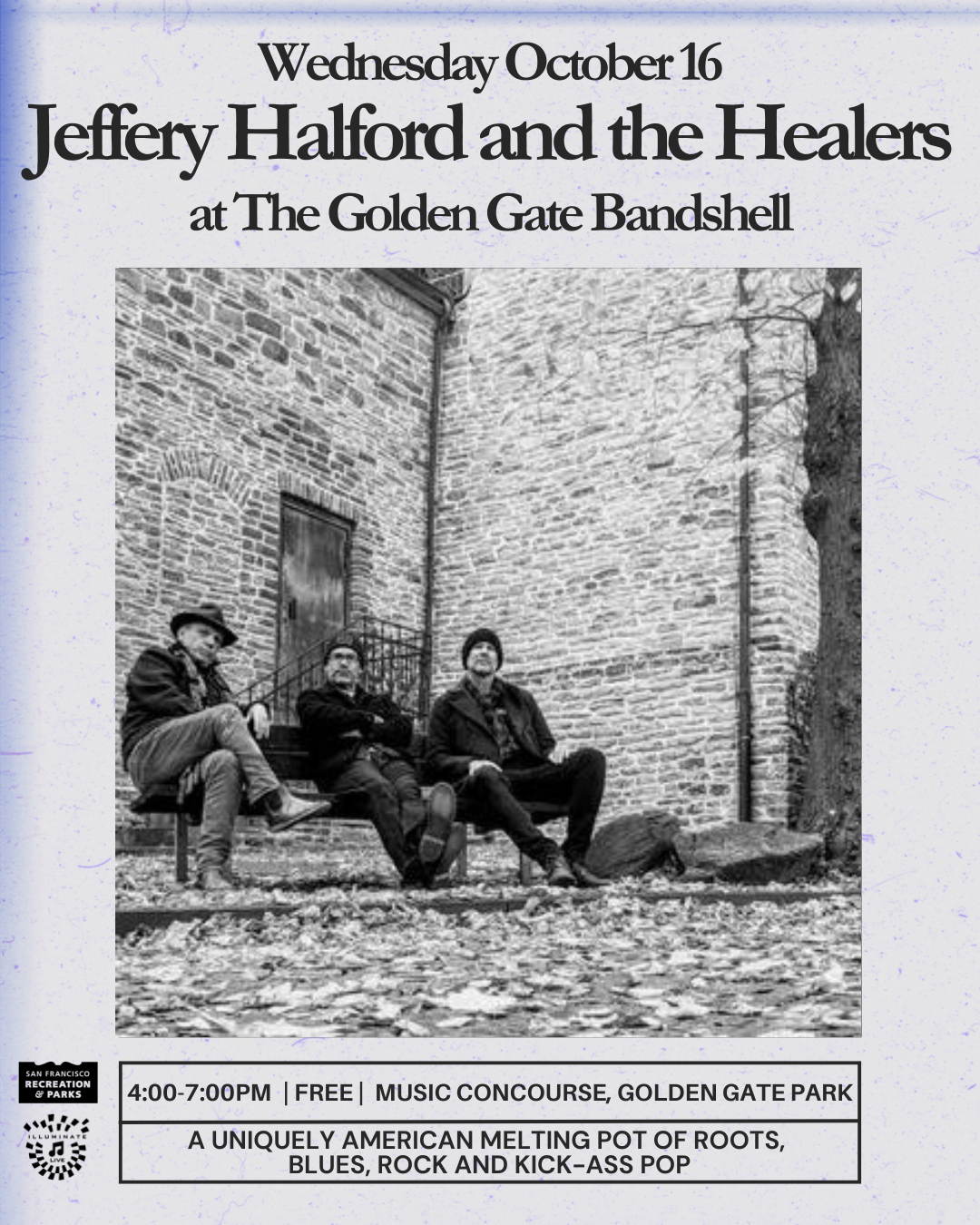 October 16, 2024Take a mid-week musical break with free live music at the Golden Gate Bandshell. This week features An Evening with Jeffery Halford and the Healers