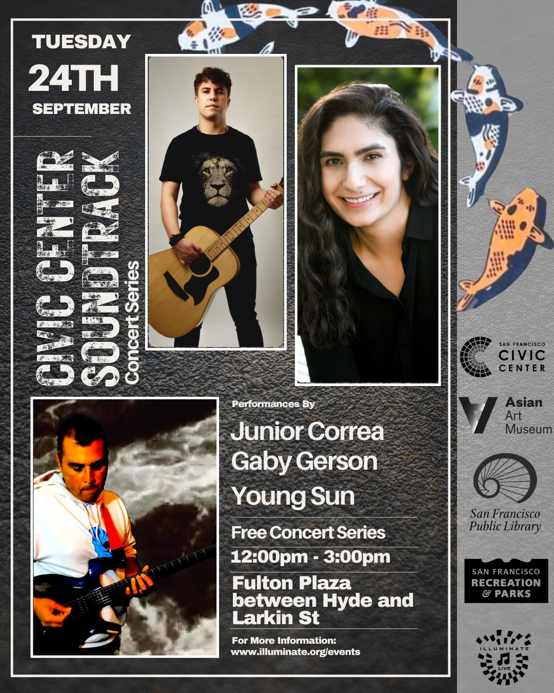 September 24, 2024Take a long lunch and enjoy free live music in Fulton Plaza! Set Times:12:00 pm – Junior Correa1:00 pm – Gaby Gerson2:00 pm – Young Sun