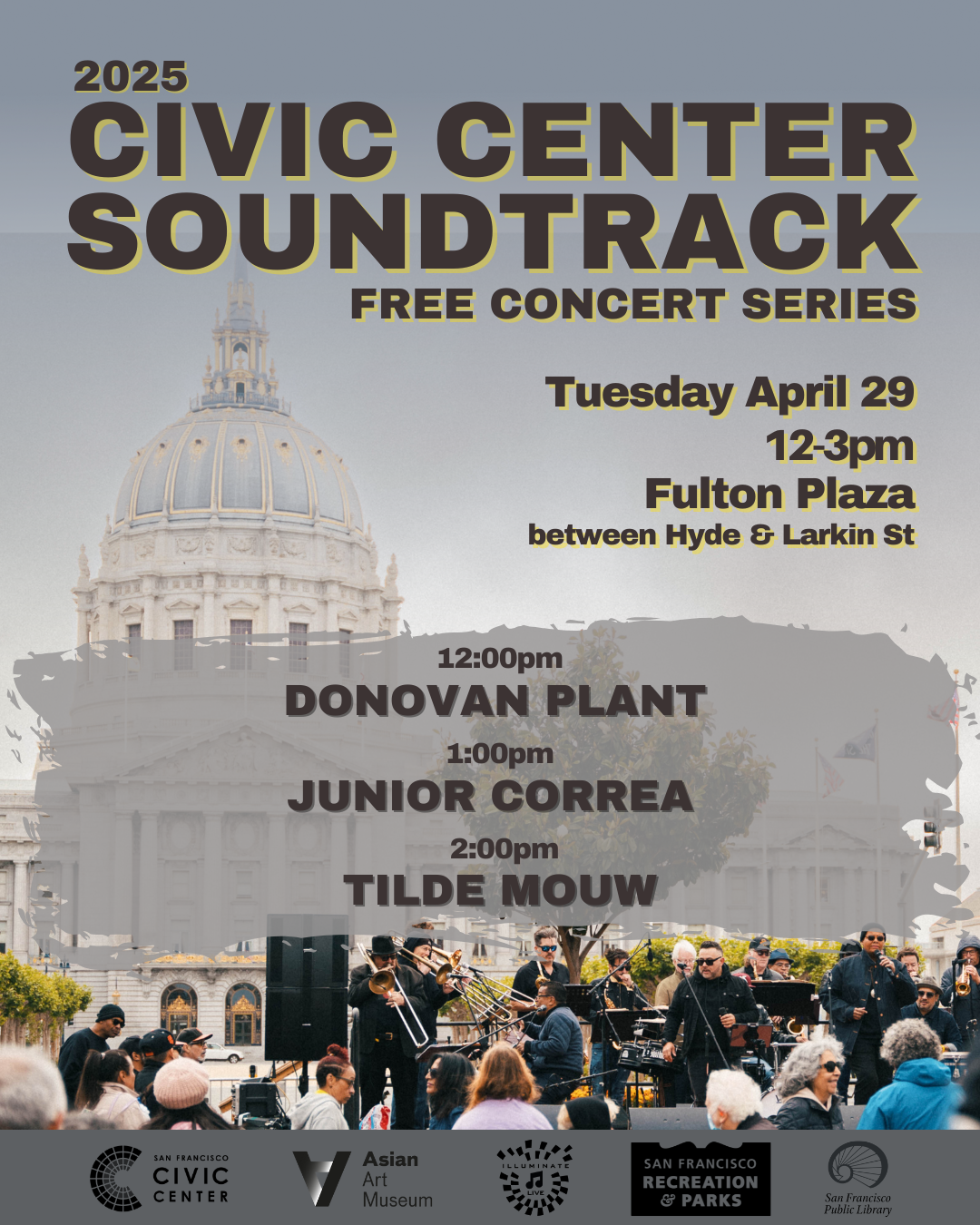 April 29, 2025Take a long lunch and enjoy free live music in Fulton Plaza! Set Times:12:00 pm – Donovan Plant1:00 pm – Junior Correa2:00 pm – Tilde Mouw