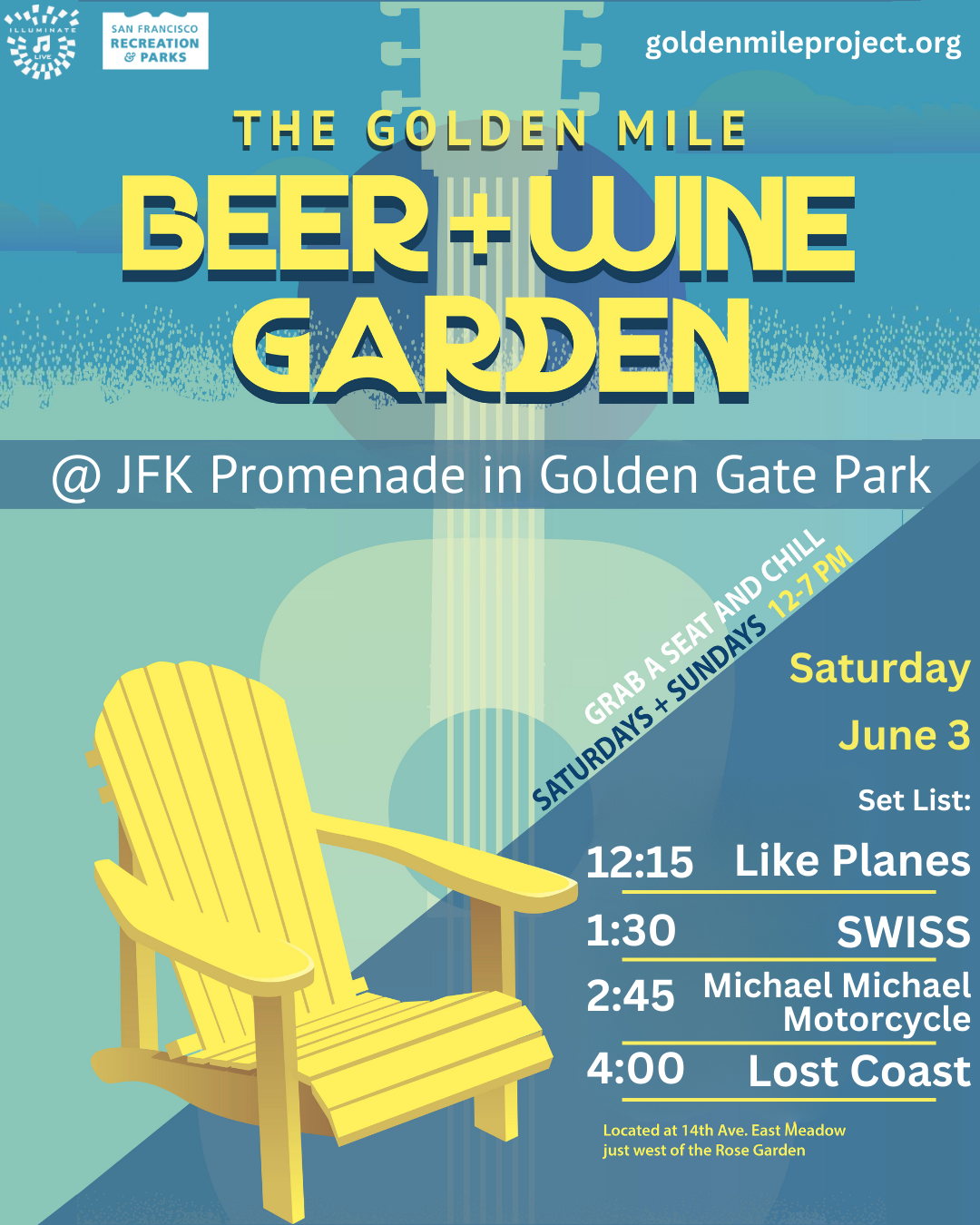 May 1, 2024Enjoy a mid-week musical break at Market to Bandshell, a free live concert that features up & coming talent from the Sunset Mercantile Farmers Market, featured on the Golden Gate Bandshell stage! Set Times: 4:00 pm – Like Planes5:00 pm – Tacomosh6:00 pm – The Wyatt Act