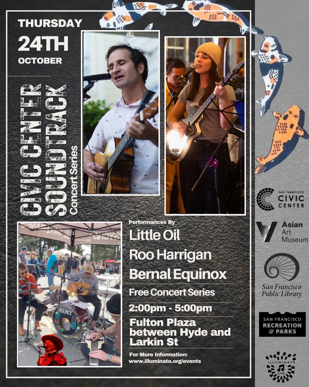 October 24, 2024Take a long lunch and enjoy free live music in Fulton Plaza! Set Times:2:00 pm – Little Oil3:00 pm – Roo Harrigan4:00 pm – Bernal Equinox