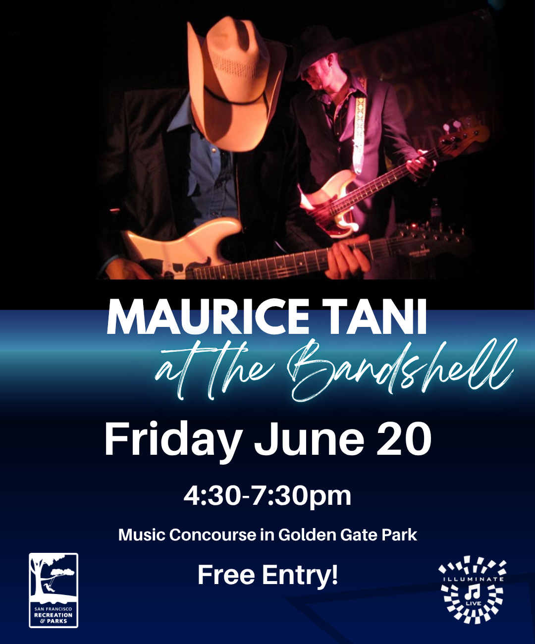 June 20, 2025Kick off the weekend with free live music in Golden Gate Park! Bring your favorite drinks, tasty snacks, and enjoy this all-ages show featuring 2 sets by Maurice Tani