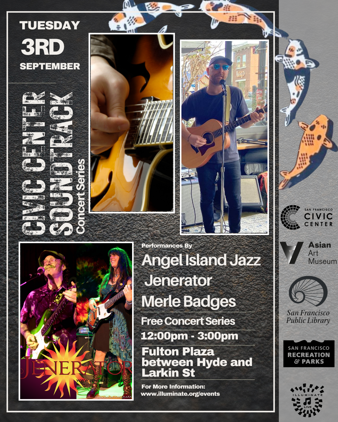 September 3, 2024Take a long lunch and enjoy free live music in Fulton Plaza! Set Times:12:00 pm – Angel Island Jazz1:00 pm – Jenerator2:00 pm – Merle Badges