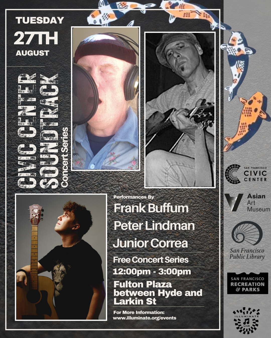 August 27, 2024Take a long lunch and enjoy free live music in Fulton Plaza! Set Times:12:00 pm – Frank Buffum1:00 pm – Peter Lindman2:00 pm – Junior Correa