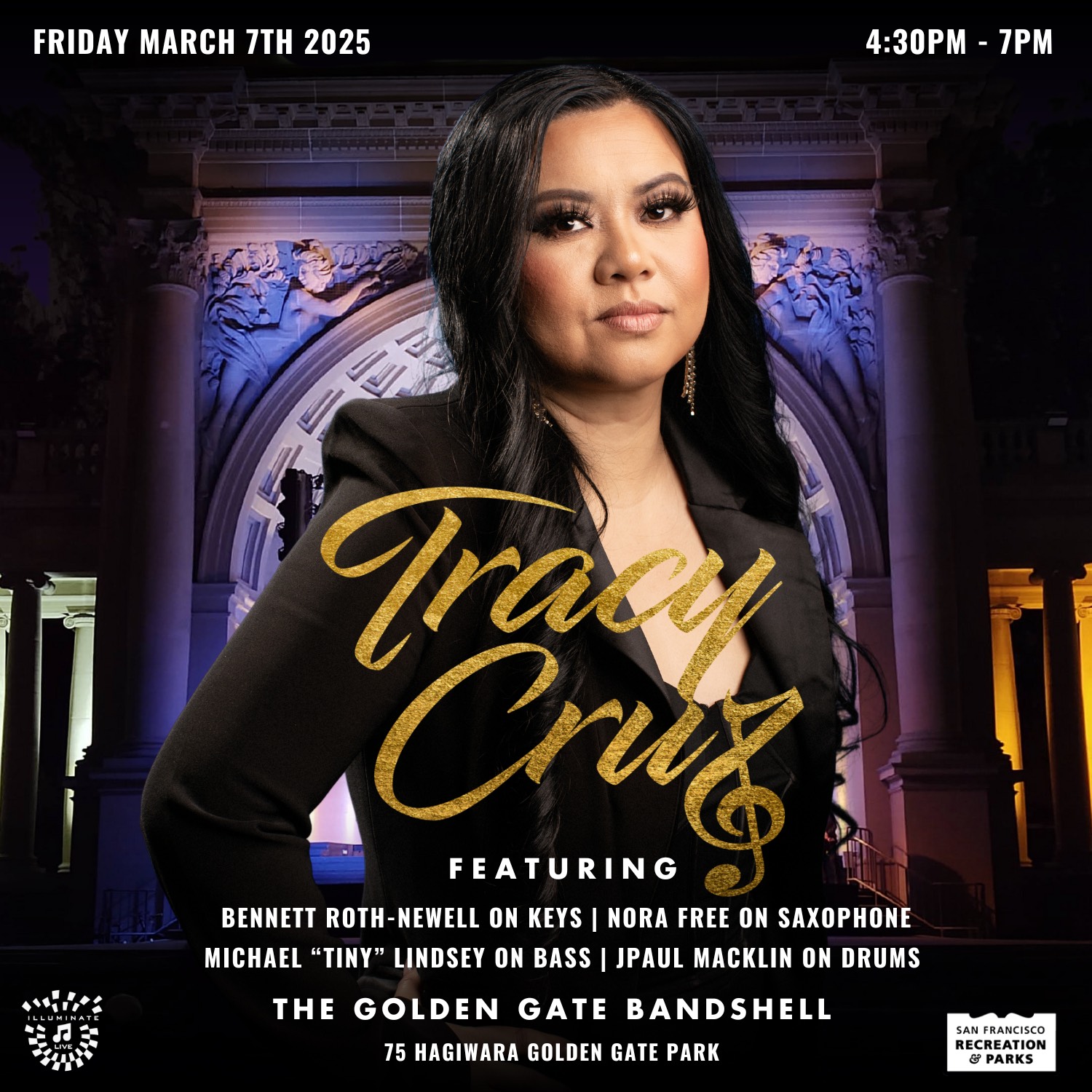 March 7, 2025Kick off the weekend with free live music in Golden Gate Park! Bring your favorite drinks, tasty snacks, and enjoy this all-ages show featuring 2 sets by Tracy Cruz