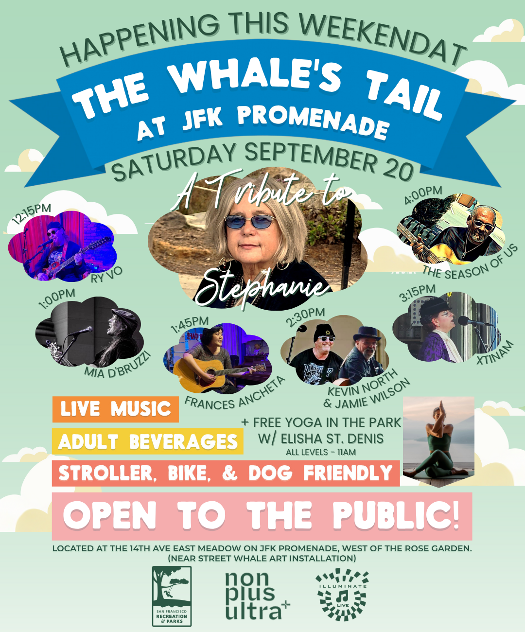 September 20, 2025The Whale’s Tail is honoring the life and music of Stephanie of The Season of Us with a packed line up of local musicians. We’ll start with FREE Yoga in the Park with Elisha St. Denis at 11am! Swing by, stretch out, and stay to enjoy the afternoon in the park! Snag your FREE RSVP for yoga […]