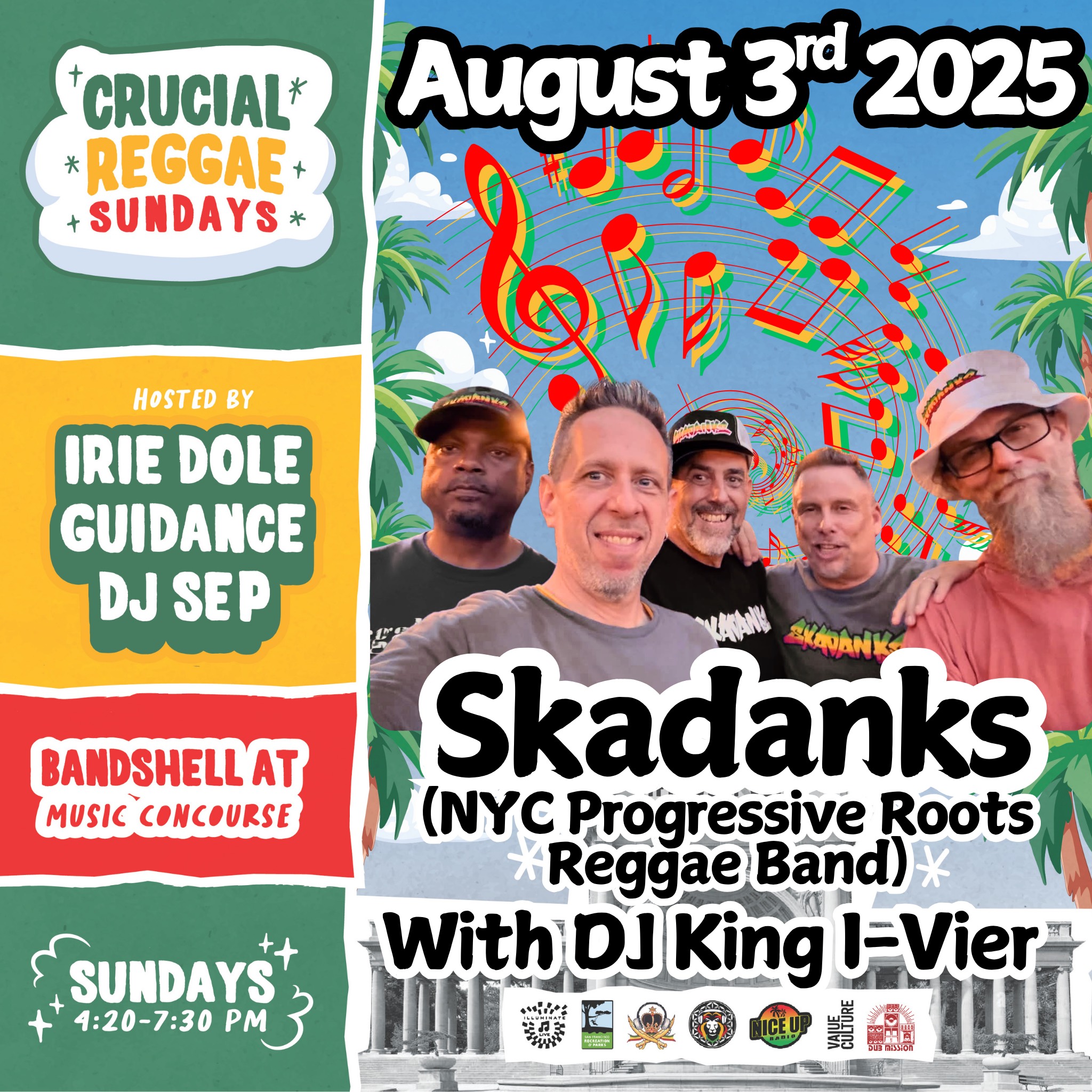 Close out the weekend dancing in the park at Crucial Reggae Sundays.