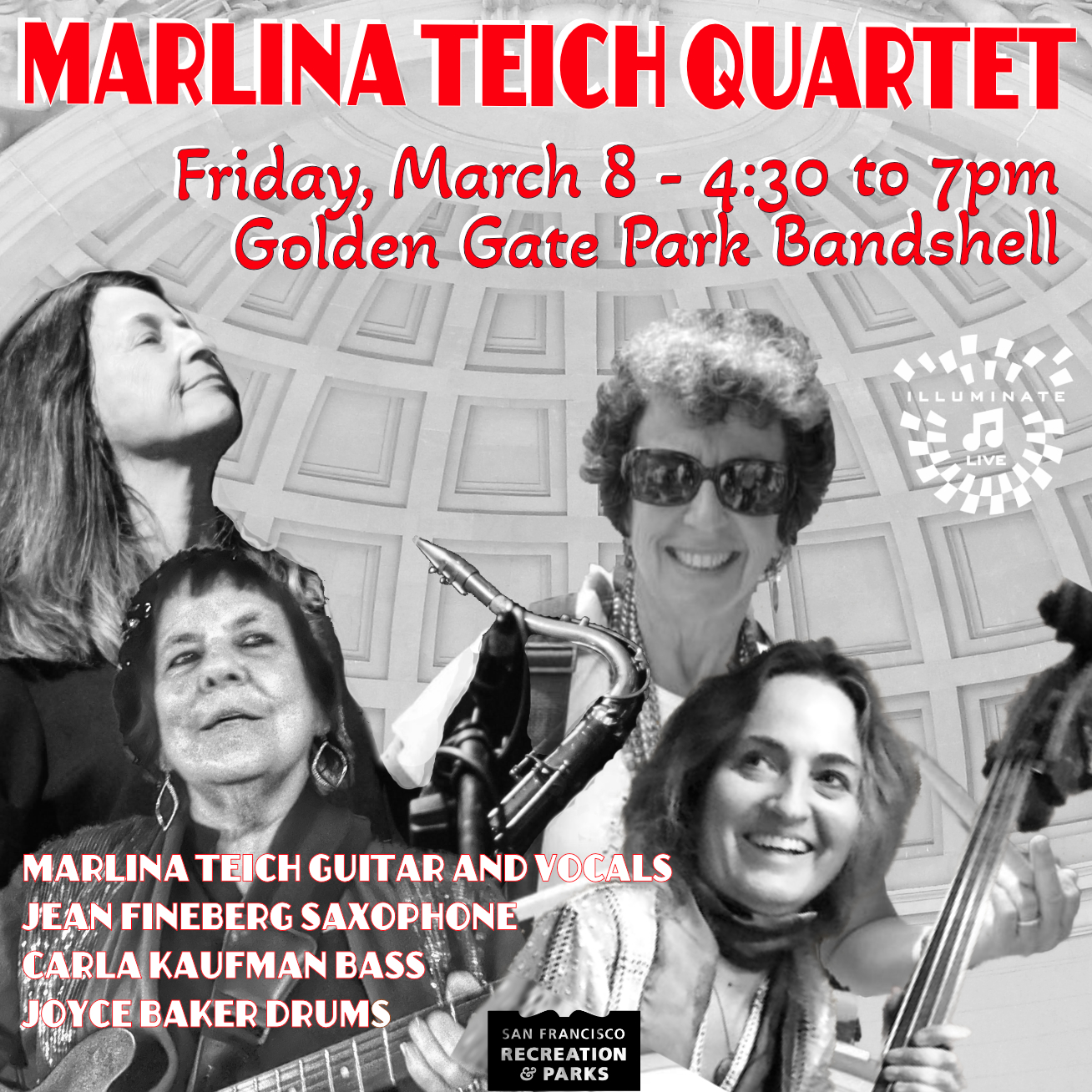 4:30 pm – 7:00 pmEase into the weekend with Friday Happy Hour at the Golden Gate Bandshell featuring Marlina Teich Quartet