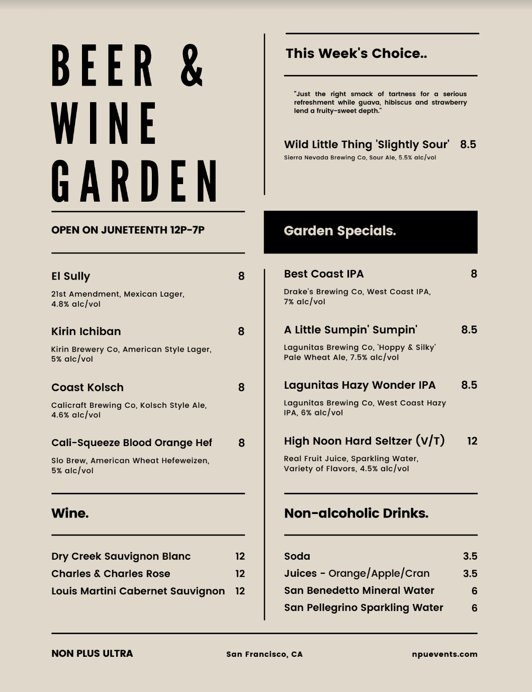 12:00 pm – 7:00 pmThe Golden Mile Beer & Wine Garden is open every Saturday & Sunday from 12pm-7pm.