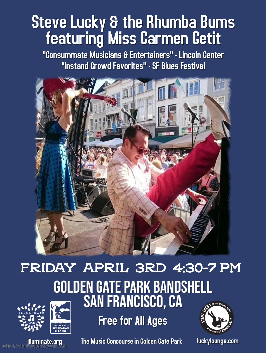 Featuring Miss Carmen Getit, Steve Lucky & the Rhumba BumsApril 03, 20264:30 pm – 7:30 pm : Friday Happy Hour | April 3